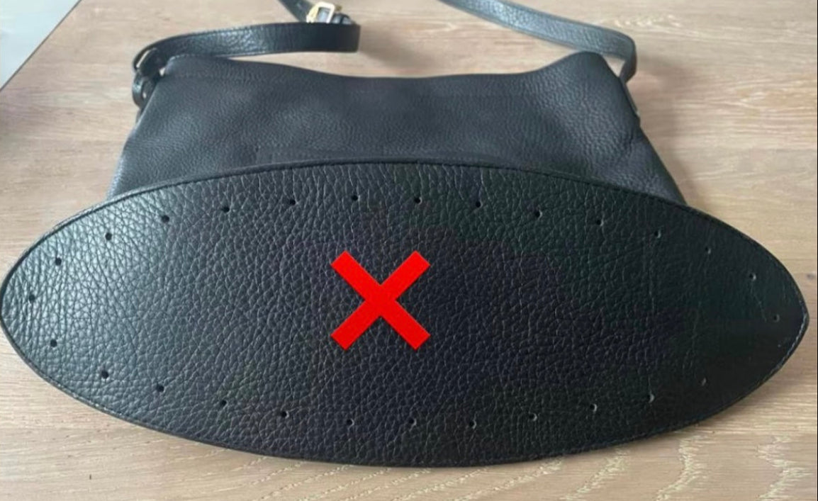 De onderkant van een Delvaux handtas mag geen vervormingen vertonen. Sommige modellen, zoals de Pin, Pensée en Satan, hebben een stevige onderkant met gaatjes. Bij deze modellen is het belangrijk dat de gaatjes in meerdere rijen aanwezig zijn; een enkele rij wijst vaak op een namaak Delvaux.